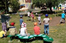 Веселый праздник «Сабантуй» прошел в детском саду 19 июня. Дети играли в народные татарские игры, соревновались в ловкости и силе, исполнили песни о народном празднике.