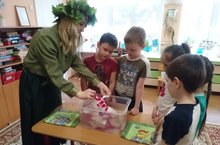 Воспитанники подготовительных к школе групп приняли участие в квест-игре «Друзья зеленой планеты». В ходе игры дети помогали сказочным героям Шурале, доктору Айболиту, Снежной королеве, Золотой рыбке, Водяной вернуться каждому в свою сказку, выполняя задания на знание растительного и животного мира, правил поведения в природе.
