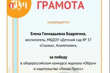 Поздравляем наших воспитателей Бодрягину Е.Г. и Чентаеву О.Г. с победой в общероссийском конкурсе журнала "Обруч" и издательства "Линка-Пресс". Призовое место в конкурсе "Все лето в одном фото!" в номинации "Лучший хэштег". Желаем дальнейших творческих успехов!
