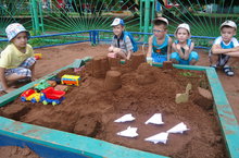 Конкурс поделок из песка прошел среди групп детского сада. Дети построили песочные города, дворцы, дороги, украсили постройки бросовым материалом.