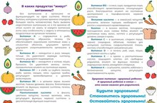 Уважаемые родители! Одна из причин недостаточной обеспеченности организма витаминами - отклонение фактического питания от рекомендуемых рациональных норм: недостаточное потребление свежих овощей и фруктов, продуктов животного происхождения, избыточное потребление углеводов, плохая осведомленность в вопросах правильного построения рациона, небрежность в питании, следование "модным" диетам и т.п. Следите за тем, чтобы Ваш ребенок получал полноценное и сбалансированное питание!