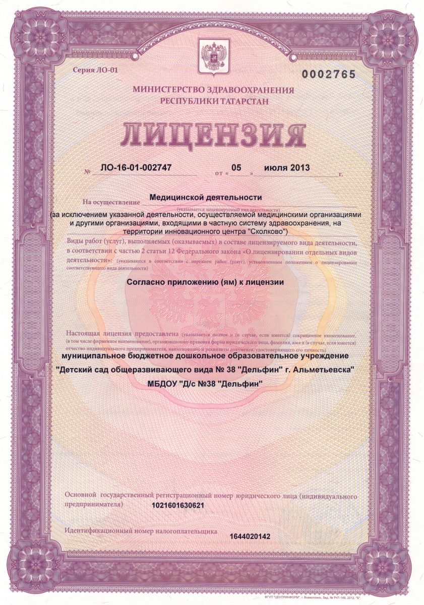 муниципальное бюджетное дошкольное образовательное учреждение "Детский сад общеразвивающего вида № 38 "Дельфин" г.Альметьевска"/"Әлмәт шәһәре "38 нче гомумүстерешле балалар бакчасы "Дельфин" мәктәпкәчә белем бирү муниципаль бюджет учреждениесе"