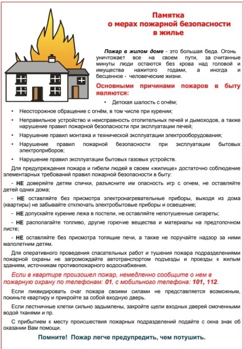 Памятка "О мерах пожарной безопасности в быту"