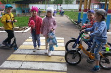 Закрепление с детьми старшей группы "Ромашка" правил дорожного движения на площадке БДД.