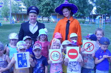 В детском саду еженедельно по четвергам проводятся развлекательные мероприятия для детей. 31 июля было проведено развлечение с детьми «Путешествие в страну светофорию». Ребятам напомнили о знаках на которые ориентируются водитель, пешеход («главная дорога», «пешеходный переход» и т.д.), и о том, как регулирует движение светофор. Его провели воспитатели Шайдуллина А.Д., Шарафиева Д.И. и музыкальный руководитель Опачанская А.М. Дети с удовольствием принимали участие в конкурсах «Собери знак», «Угадай транспорт», а также отвечали на вопросы по знанию знаков и правил дорожного движения.
