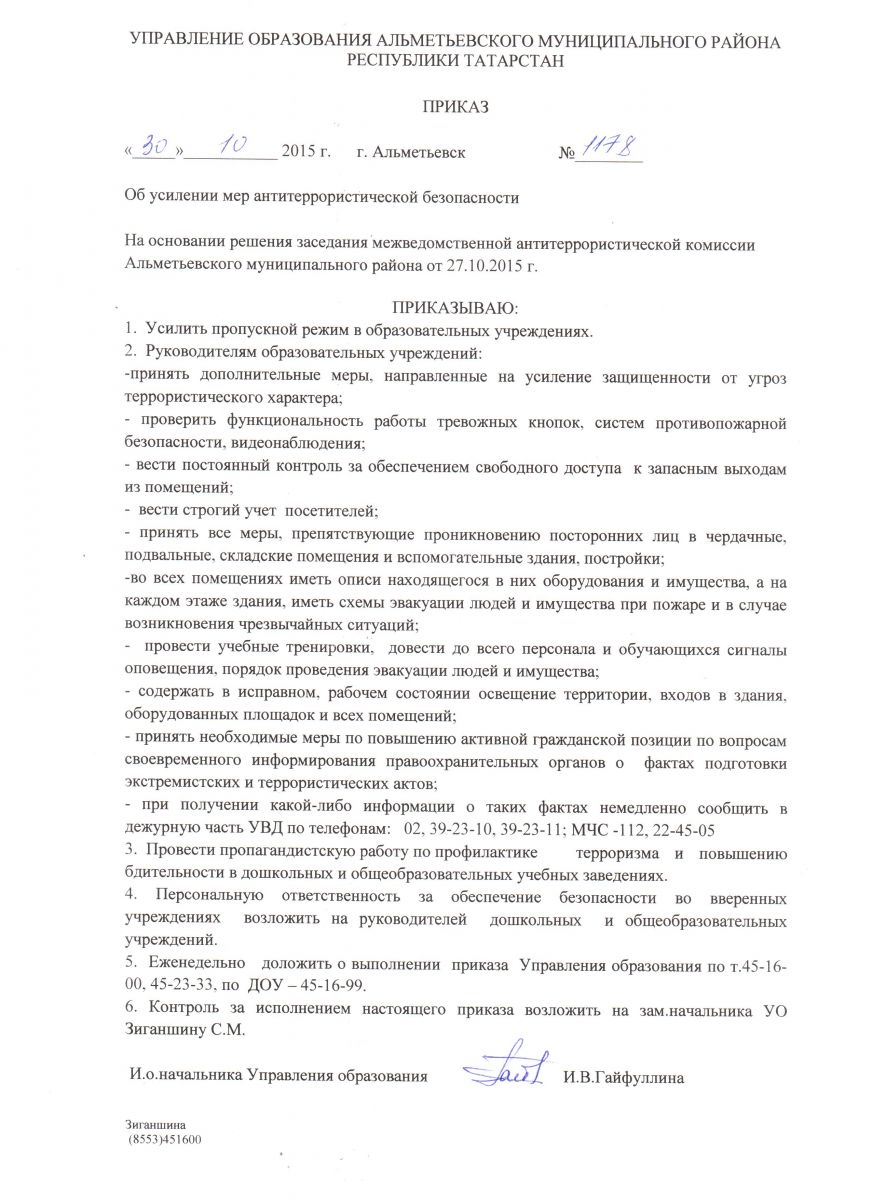 Приказ УО №1178 от 30.10.15 "Об усилении мер антитеррористической безопасности"