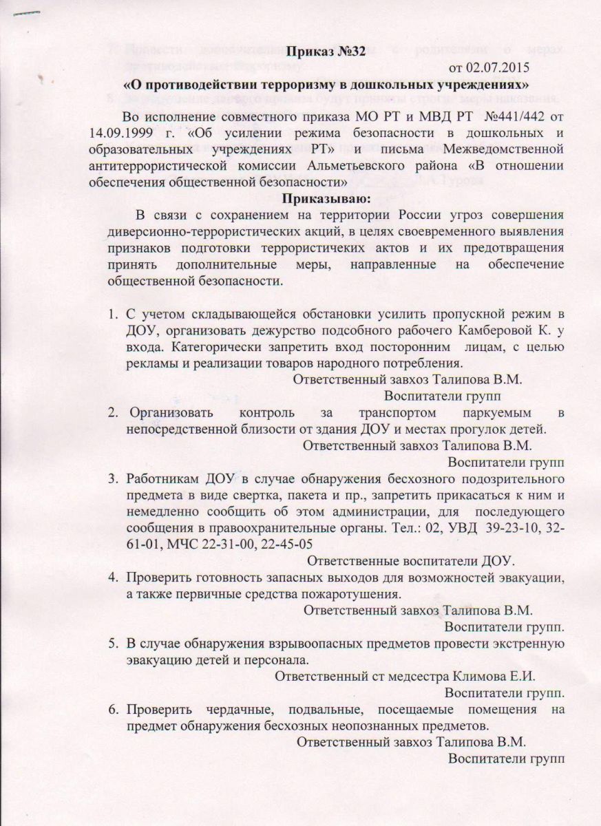Приказ №32 "О противодействии терроризму в дошкольных учреждениях"