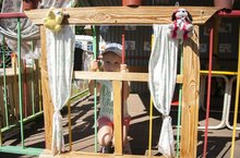 Веранда группы №9 полностью отображает стиль деревенского дома, а на участке можно наблюдать мойку, тележку, мельницу, лошадку для забрасывания мячей, утку для метания колец, место для "костра".