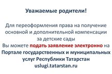 Переоформление права получения основной и дополнительной компенсации да детский сад через портал госуслуг РТ 30.06.2016