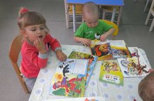 Развивать интерес рассматривать рисунки в книжках и альбомах, узнавать знакомых персонажей, задавать вопросы. Иллюстрации в книгах сказок, альбомы для рассматривания. -