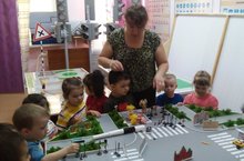 Дети 1 младшей группы №3 снова посетили кабинет ПДД. Совместно с воспитателями Хабибуллиной А.М. и Зиатдиновой З.Р. дети рассмотрели спецтехнику, дорожные знаки и макет перекрестка. Даже в столь юном возрасте маленькие пешеходы начинают осваивать понятия "зебра", "светофор" и т.п. На примере светофора дети получили знания не только о его прямом назначении, но и повторили основные цвета, формы, а также ориентировку в пространстве "сверху", "ниже", "выше", "снизу".