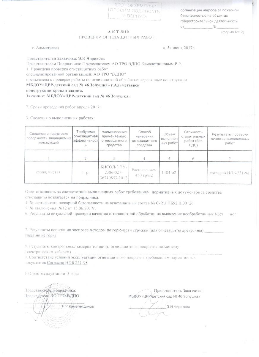 Представление об устранении нарушений законодательства о пожарной безопасности и Отчет об устранении