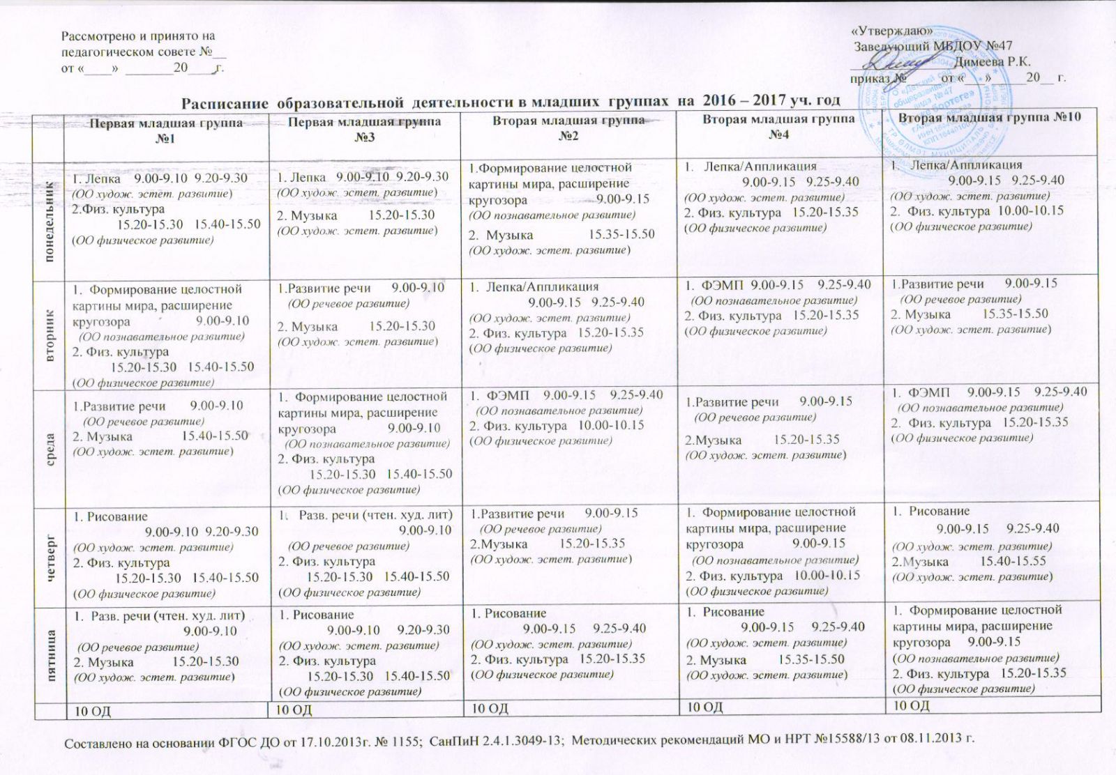 Расписание образовательной деятельности в младших группах на 2016-2017 учебный год