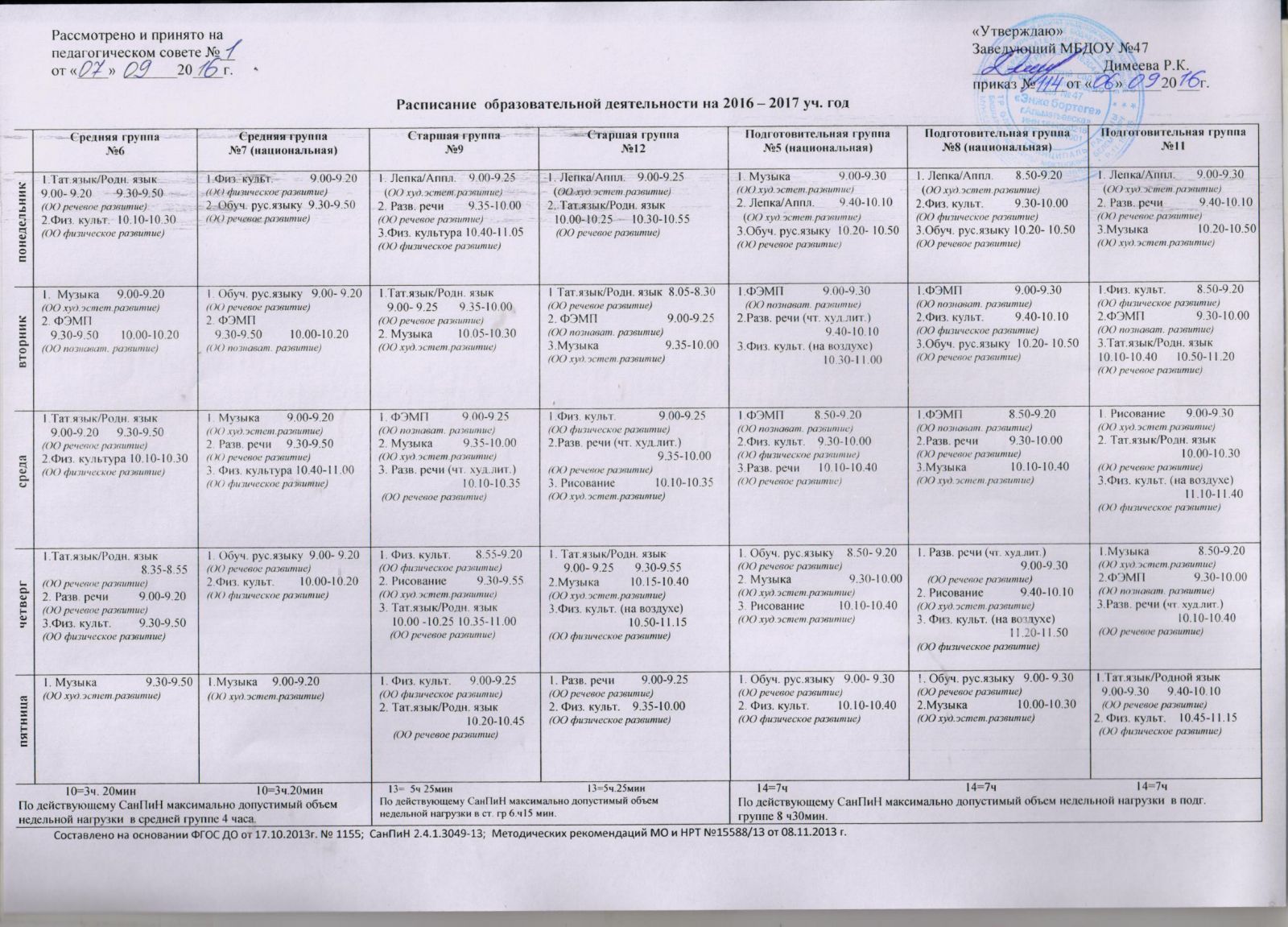 Расписание образовательной деятельности на 2016-2017 учебный год