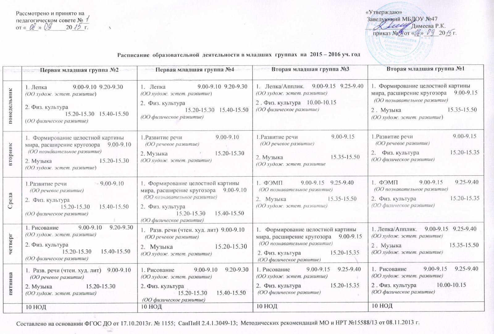 Расписание образовательной деятельности на 2015-2016 учебный год (младшие гуппы)