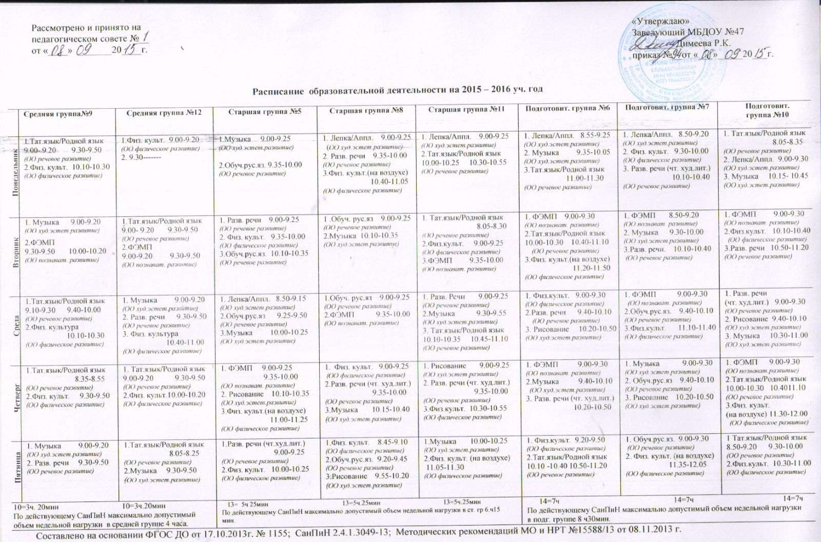 Расписание образовательной деятельности на 2015-2016 учебный год