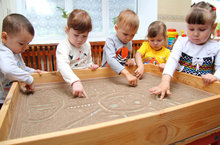 Песочная терапия 28.06.2017 В ДОУ детей с раннего возраста учат быть здоровыми, используя разнообразные средства. Одно из них песочная терапия. Круглый год воспитатели организуют с детьми раннего возраста игры с песком. Очередное использование песочной терапии было организовано 28.06.17г. Дети самостоятельно рисуют солнышко в песке - результат систематического использования песочной терапии.