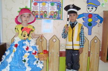 Три года ДОУ участвует в городском конкурсе карнавальных костюмов из бросового материала "Детям чистый город с безопасным движением!" После конкурса карнавальные костюмы используются в разнообразных видах детской деятельности: театрализованной, в сюжетно - ролевых и режиссерских играх. Выполняя одно из требований ФГОС ДО: развитие самостоятельности и инициатвности детей, воспитатели создают условия для данного требования. Так 10.07.2017г. воспитатель 1 квалификационной категории Хазова Г.С. внесла несколько костюмов в уголок ряженья. Результат: дети тут же стали примерять их.