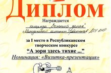 30 апреля - 1 мая 2016 г. воспитатель Сопина Анна Сергеевна представляла молодёжь дошкольных образовательных учреждений на республиканском съезде-конкурсе среди молодёжных комитетов "А зори здесь тихие". Присущие ей активность, креативность, эмоциональность она продемонстрировала на конкурсе. Результат - четыре диплома, свидетельствующие о четырёх призовых местах в различных номинациях конкурса.
