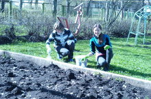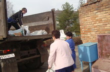 Дружно работают сотрудники МБДОУ № 48 "Веснянка" на территории детского сада и вокруг неё. В среду и четверг - "чистые дни".