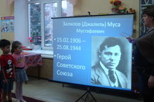 Согласно плана мероприятий, посвященных 110-летию со Дня рождения поэта - героя, лауреата Ленинской премии СССР М.Джалиля, в старшей группе ДОУ воспитателем Багаутдиновой Ю.И. был осуществлен просмотр видеопрезентации о жизни и творчестве М.Джалиля.