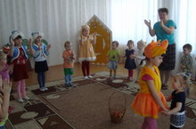Музыкальным руководителем Нотфуллиной С.Б. и детьми подготовительной к школе группы была представлена музыкально-театрализованная постановка сказки "День рождения Лисички" для детей 1 младшей группы. Малыши с удовольствием поздравили Лисичку, исполнив хороводную песню "Каравай". Приятным сюрпризом для детей стало сладкое угощение от Лисички.