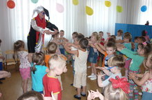 Сегодня в МБДОУ прошло музыкальное театрализованное развлечение для детей младших групп. В гости к детям пришли Клоун и персонажи кукольного театра - Петрушка, Заяц и Волк. Дети весело танцевали, пели, отгадывали загадки и играли. Вспомнив и назвав вежливые, добрые и ласковые слова, дети задобрили злого Волка и подружились с ним.