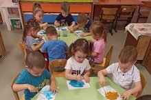 Ребята средней группы "Почемучки" на занятии по аппликации 26.01.2022