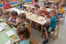Ребята первой младшей группы "Кнопочки" лепили ягодки для птичек.