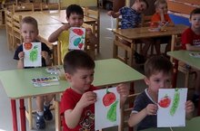 Ребята средней группы "Почемучки" на занятии по рисованию научились рисовать помидор и огурец овальной и круглой формы.