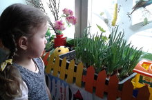 В своей группе №2 мы создали уголок для экологической работы с детьми в весенний период. Совместно с детьми оформили подоконник, посадили растения. Каждый день закрепляем навыки ухода за растениями, ведем дневники наблюдений, радуемся каждому успеху. Ведь выращенные нами цветочки будут радовать нас летом на участке детского сада, а укроп, петрушка, салат и лук отлично гармонируют в нашем рационе питания.