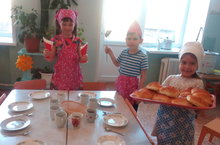 Детям группы √12 очень нравится дежурить по столовой. Они с удовольствием одевают фартуки и накрывают на стол. Как приятно всей группой ужинать за таким красиво накрытым столом.