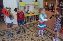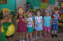 Во время путешествия дети встретили сказочных героев, вспомнили их имена, из каких они сказок, затем юные актеры инсценировали сказку «Репка».