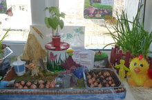 Для постоянного общения детей с растениями в нашей группе №3 был создан огород на окошке. Дети имеют возможность рассматривать растения и наблюдать за ними; вести дневники наблюдений за ростом и развитием саженцев.