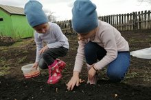 Воспитанница группы 14 "Муравьишки" Гультяева Корнелия со своей сестрёнкой помогают маме сажать огород.