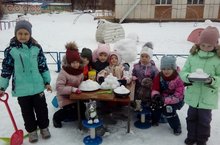 Дети делятся на небольшие подгруппы, договариваются и выбирают тему. Сегодня это - " Масленица". Девочки смело занимают место у «печи» и тут начинается самое интересное: они лепят разные угощения и всё это делается с большим удовольствием!!! Эй, народ! К нам Масленица идёт!!! -