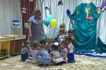 Дети побывали на морском дне. Слушали, как шумят ракушки; познакомились с обитателями подводного мира: рыбками, медузой, дельфинами, морской звездой. Побывали на острове песочных фантазий, где рисовали на песке пальчиками. Также встретились с Морской Феей, помогли ей почистить пруд от мусора. Детям очень понравилось это увлекательное, интересное приключение. -