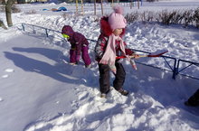Мы лопаты берем, дружно чистить снег идем!