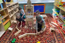 "На встречу к звёздам!" - под таким девизом 12 апреля отмечали день Космонавтики в детском саду. В этот день воспитатели рассказывали детям о первом человеке в мире - который полетел в космос Ю.Гагарине, дети рассматривали иллюстрации, фотографии других космонавтов. В завершении тематической дня дети в группах из деревянного конструктора построили настоящие Космические городки с ракетами.