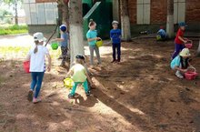 В детском саду прошел детский трудовой десант. Дети с удовольствием приняли игровую ситуацию, связанную с трудом.Наши детишки трудностей не боятся, кто то собирал ветки деревьев, кто-то шишки для продуктивной деятельности, а кто-то подметал. Работа спорится,когда все дружно и умело трудятся. Все остались довольными наведенным порядком на территории детского сада.