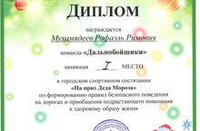 Коллектив детского сада выражает огромную благодарность Мухамядееву Рафаэлю Римовичу – родителю группы № 8 «Смешарики» за активное участие в городском спортивном мероприятии «На приз Деда Мороза» по формированию правил безопасного поведения на дорогах и приобщения подрастающего поколения к здоровому образу жизни! Спасибо Вам за отзывчивость и за то, что не смотря на занятость, нехватку времени, проявляете сердечное участие в жизни детского сада.
