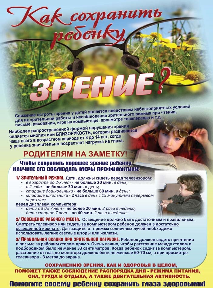 Памятка для родителей "Как сохранить ребёнку зрение!".Памятка "Гимнастика для глаз".