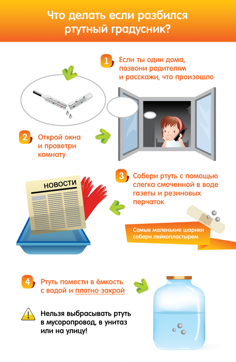 Памятка: Что делать, если разбился ртутный градусник? 1 стр, 2 стр