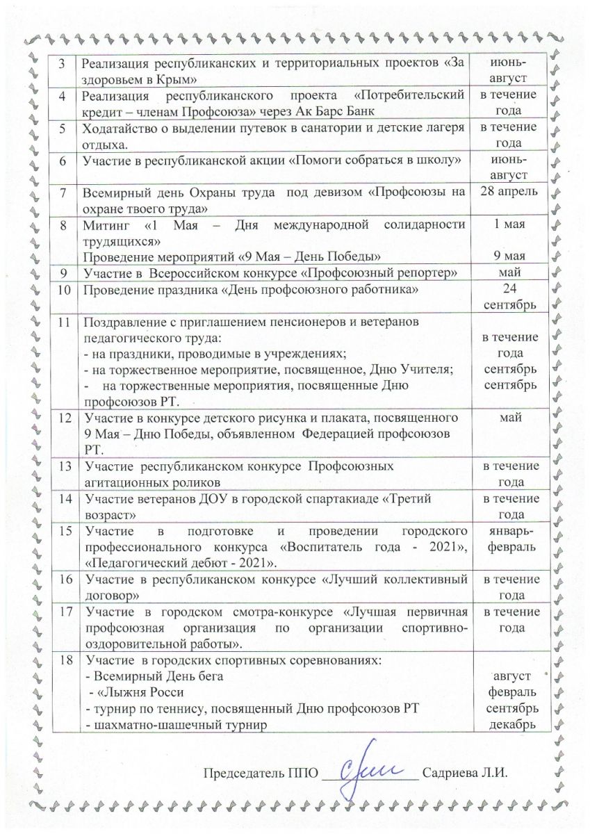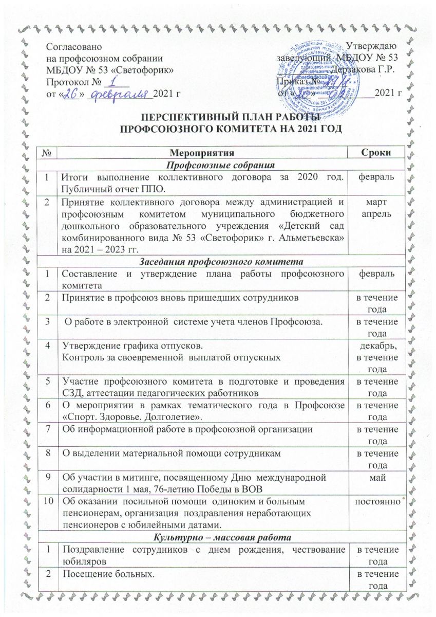 Перспективный план профсоюзного комитета на на 2021 год 1 стр, 2 стр.