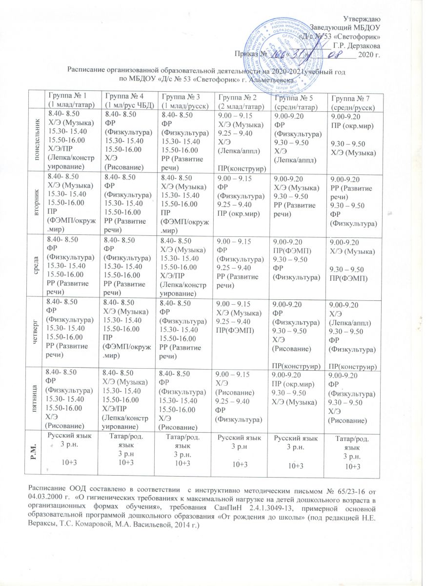 Расписание ООД на 2020-2021 учебный год 1стр 2 стр
