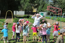 14 юля 2016г. в детском саду прошло развлечение "Лето-красное, лето - жаркое", В гости к детям при шла Баба-Яга, которая соревновалась с детьми в беге на метле, в прыжках. Дети играли в народные игры "Бабка-ёжка, костяная ножка..." и "Сороконожки". Закончилось развлечение веселой дискотекой.