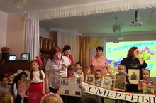 В нашем детском саду прошло мероприятие посвященное к дню Победы, с целью формирования любви к своей Родине и уважения к людям, которые ковали Победу. Дети с удовольствием читали стихи, пели песни, танцевали, играли, вместе с педагогами и родителями исполнили песню военных лет «Катюша». Почтили память о трагическом событии и погибших в нём людях минутой молчания. Праздник завершил бессмертным полк. -