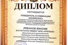 Поздравляем воспитанника подготовительной к школе группы №7 «Солнышко» победителя в номинации «КОНФЕРАНС» ГОРОДСКОГО КОНКУРСА ДЕТСКОГО ТВОРЧЕСТВА «ЗВЕЗДОЧКИ» СРЕДИ ВОСПИТАННИКОВ ДОШКОЛЬНЫХ ОБРАЗОВАТЕЛЬНЫХ УЧРЕЖДЕНИЙ АЛЬМЕТЬЕВСКОГО МУНИЦИПАЛЬНОГО РАЙОНА