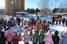 Сегодня vмузыкальные руководители и воспитатели младших групп организовали для своих воспитанников праздник "Прощание с зимой". Малыши играли, пели песни,помогали победить Зиму, которую в конце проводили до следующего года.