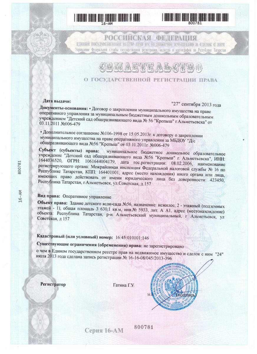 Муниципальное бюджетное дошкольное образовательное учреждение «Детский сад комбинированного вида №56 «Крепыш» Альметьевского муниципального района Республики Татарстан» / Татарстан Республикасы Әлмәт муниципаль бюджет мәктәпкәчә белем бирү учреждениесе 56 нчы катнаш төрдәге «Нэни батыр» балалар бакчасы»